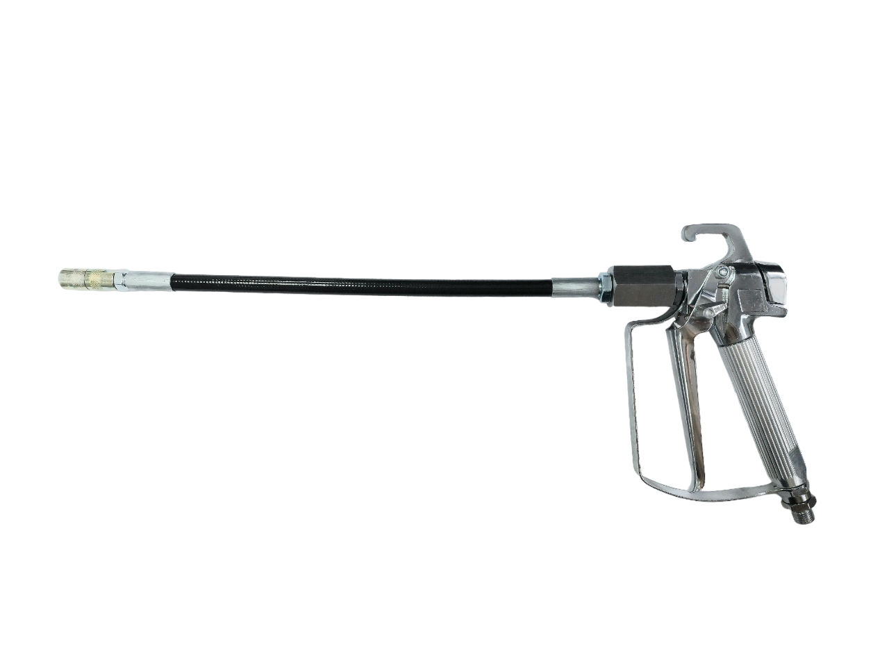 Пистолет используется в комплекте с инъекционным насосом или окрасочным аппратом. Четырёхлепестковый наконечник закреплен на гибком удлинителе длинной 300мм. Резьба на входе 1/4.